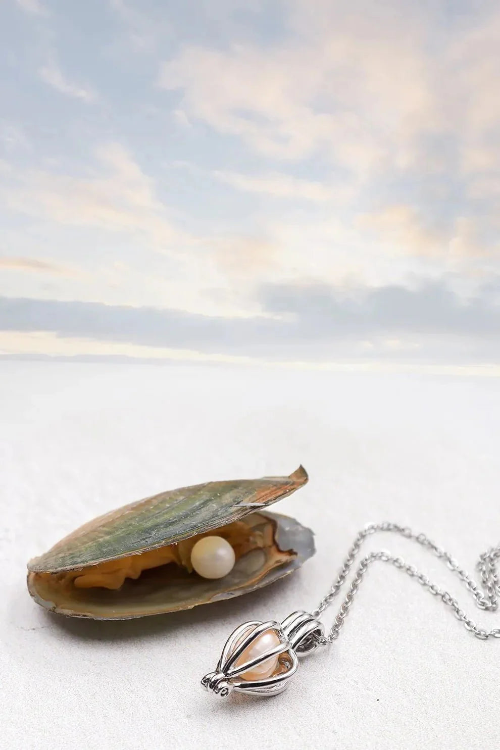 Canlı İstiridye ve İnci Kafes Kolye – Sürpriz Dolu Bir Deneyim!