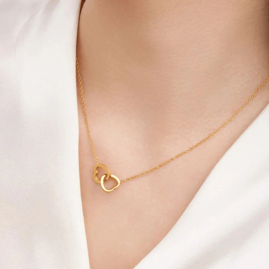 Sevgi ve bağlılığı en zarif şekilde ifade edin! Çift Kalp Kolye, iki kalbin birleşimini simgeleyen özel tasarımıyla duygularınızı stilinize yansıtır. Minimal ve göz alıcı tasarımıyla günlük kombinlerden özel günlere kadar her anınızda şıklığınızı tamamlar.